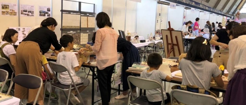 ファブリックパネルやタイル小物を来場者に作っていただくという企画。