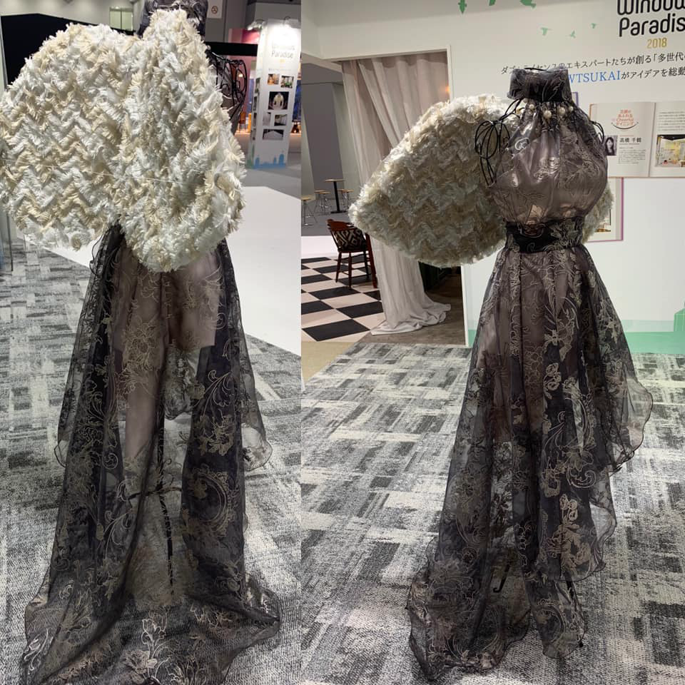 フジエさんの生地が羽根に使われてます。生地単体で見た時と違い羽根に見える木村先生マジック、素敵です。