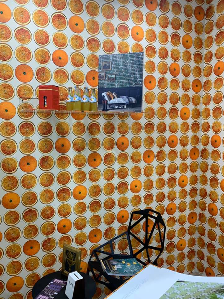 輸入壁紙や新しい照明やコントラクト家具などもあり新しいこと、