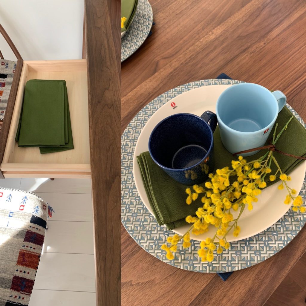 ランチョンマットはテーブルの引き出しに入れて使ってくださってるとのこと。