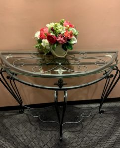 フレンチシックな雰囲気と背面のラグジュアリー感のあるドレーパリーとの取り合わせと、クッションのデザインのシャープさで甘さ控えめになり良い感じ。