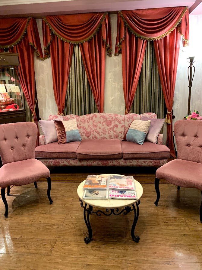 ここはロビーです。グレイッシュピンクのソファとファブリックが女心をくすぐります。意外にも外国の男性の方が座っている場面に遭遇することが多かった。