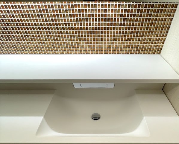 間接照明や、木目・天井クロス・手元タイルなど同素材の色違いを使用していて、実は素材統一されているのです。