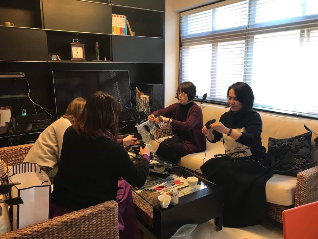 事務所でオブジェ作成中の様子