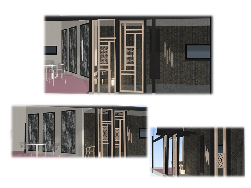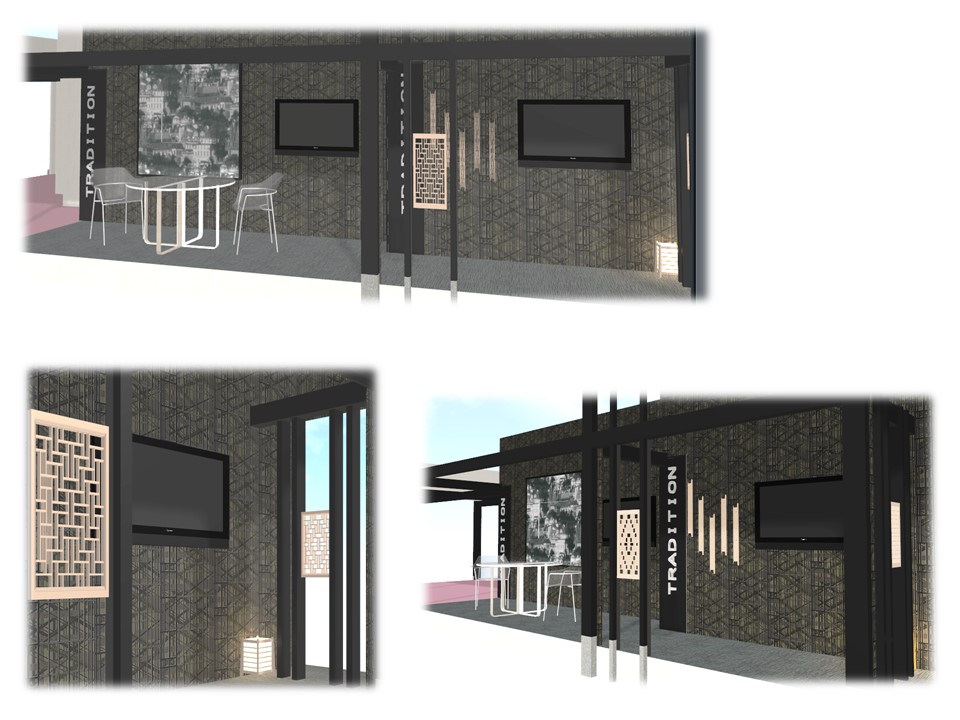 私の担当はJAFICAの展示のイメージをパースを使って、組子をお借りする大槻木工所さんに説明したり、オブジェの作成を手伝ったり。