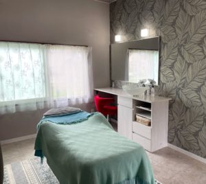 フットネイルのスペースは新たな家具をいれましたが、以前のお店からのお手持ちの品も配置を考え空間にぴったりに。