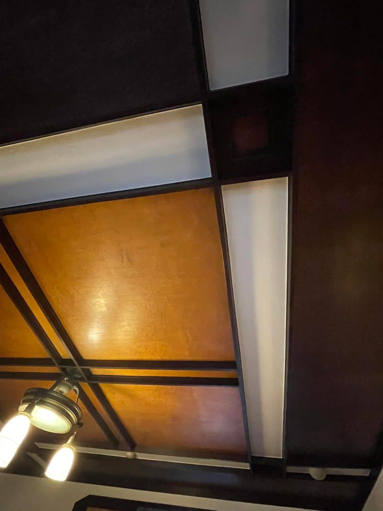 扉だけでなく天井や床の素材もデザインも見応え充分。