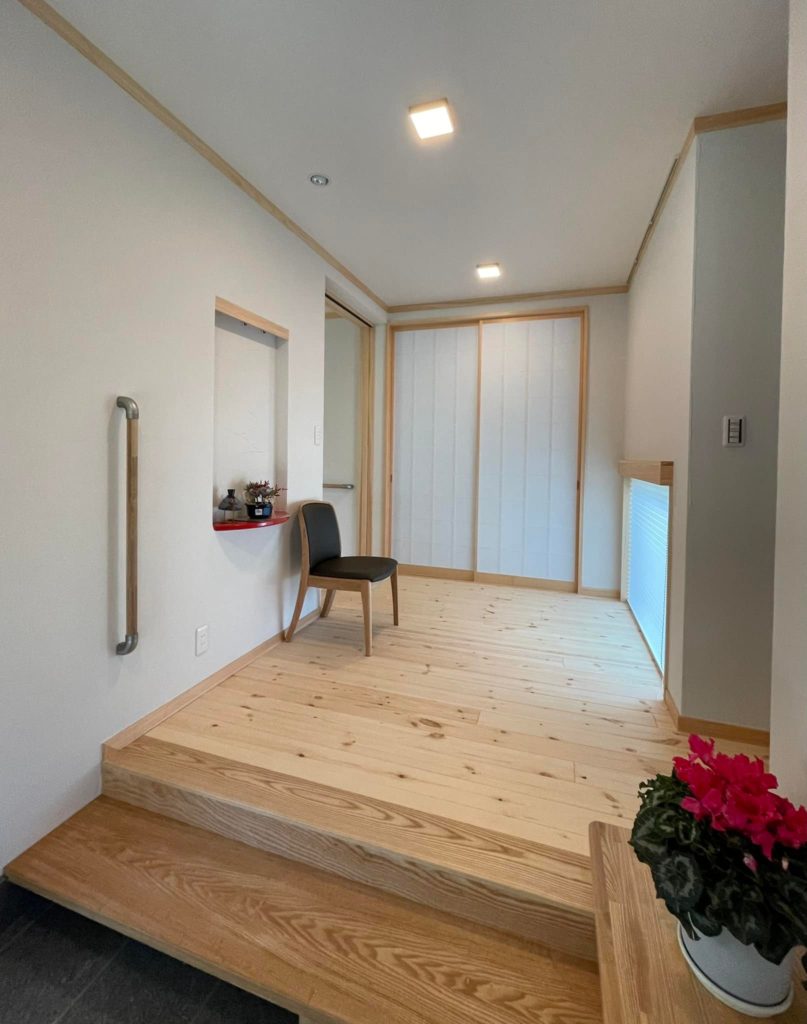 靴を脱ぎ履きするための作り付けの椅子でしたが