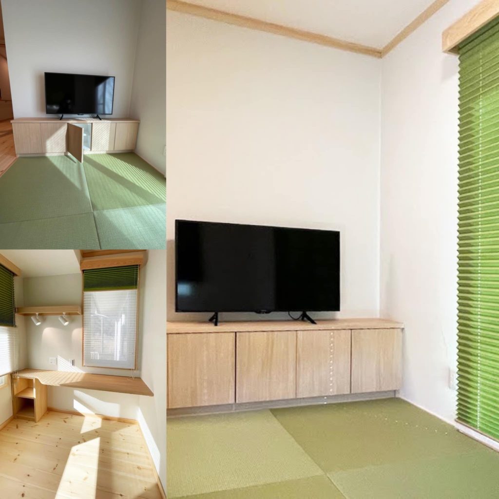 テレビボードや書斎スペースも造作家具で作りましたよ。