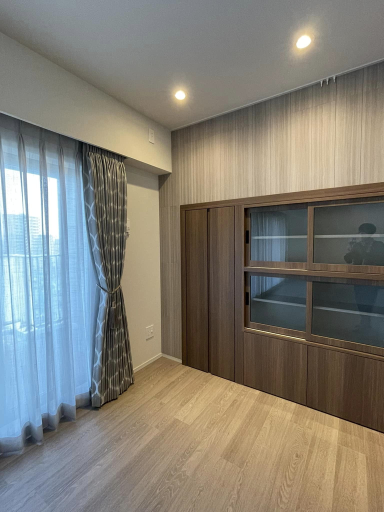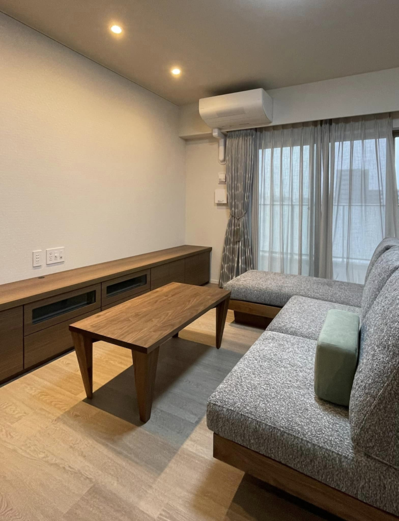 先日の造作家具のお客様の家にカーテンと置き家具が入りました。