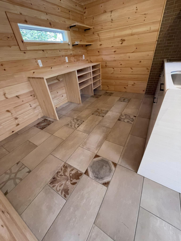 本来なら木で仕上がるところ、タイルにするだけでモダンに。