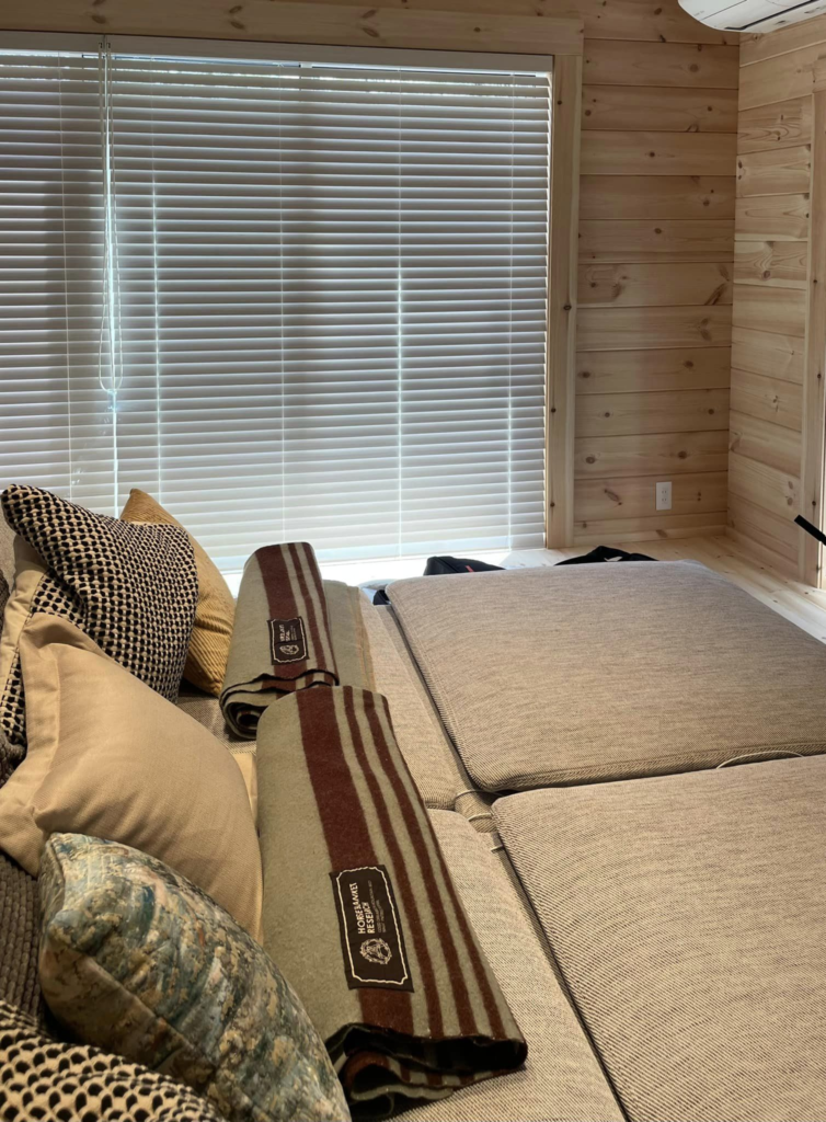 GW前に完成しました。遠方のお客様からログハウスの別荘のインテリアコーディネートのご依頼いただき、約1年。