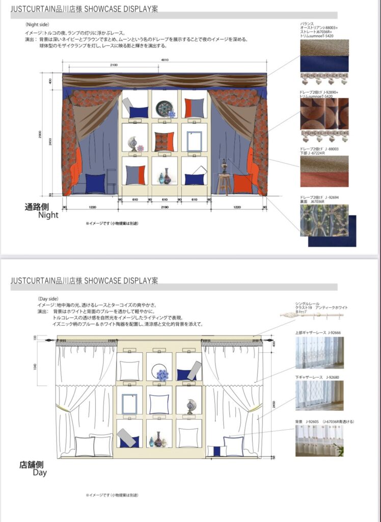 トルコのレースカーテンやドレープを生かしてその世界観と魅力を伝えること、江口名誉会長のアイデアでした。