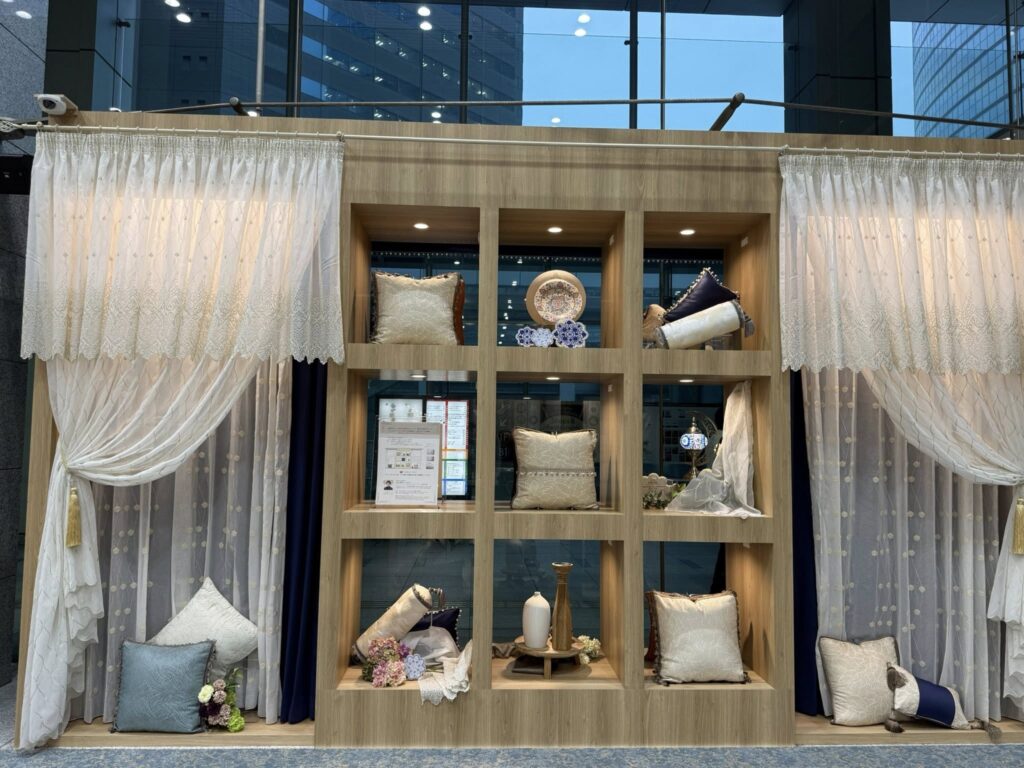 ディスプレイの内容は、オリジナルのクッションや事前に用意した工芸品なども併せてディスプレイできるよう