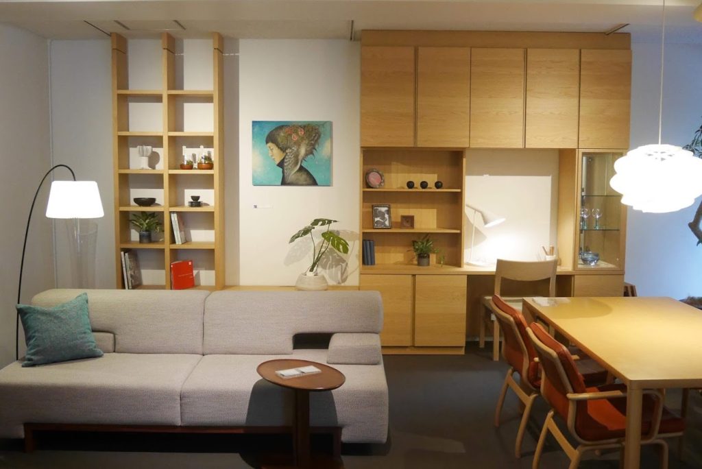 アートinカンディハウス名古屋。アート名古屋でも展示される作家さんの作品を家具と一緒に展示してあるので、お客様が自宅にアートを飾ったイメージがわきやすくよりアートが身近になりますね。