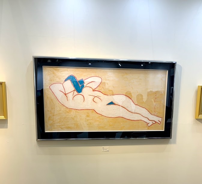 レオナール フジタ 細くて黒い線と白い肌の対比。(写真には白い肌の絵は写ってませんが)日本画的なものを残している。