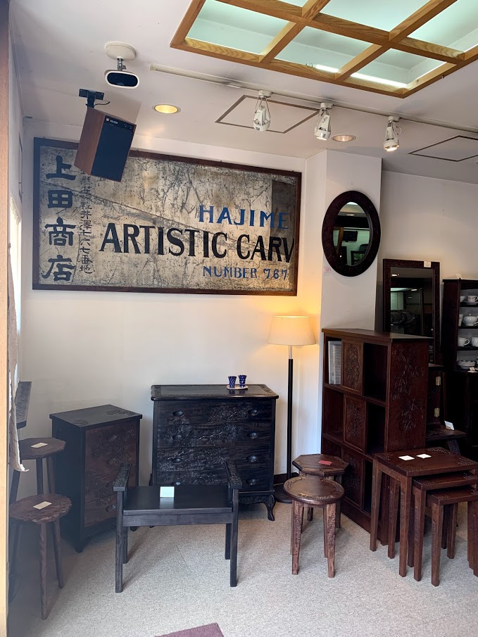 創業当時の看板もきちんと展示することで説明しやすいですね。以前は商品の奥に隠れていました。