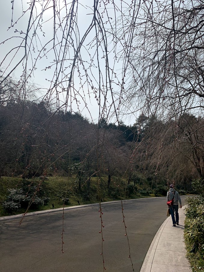 昨年桜の名所100選に選ばれ大勢の人が訪れると聞いていたので、人混みが苦手な私は桜の時期を避けて行きましたが、さすがに早かった。まだ桜のつぼみは固く、ここで桜が咲くと思うと素晴らしいだろうことが想像できる手入れの行き届いた庭とトンネルをくぐって、いざ会場へ。平日だというのに大勢の観光客。年々人が多くなりますね。