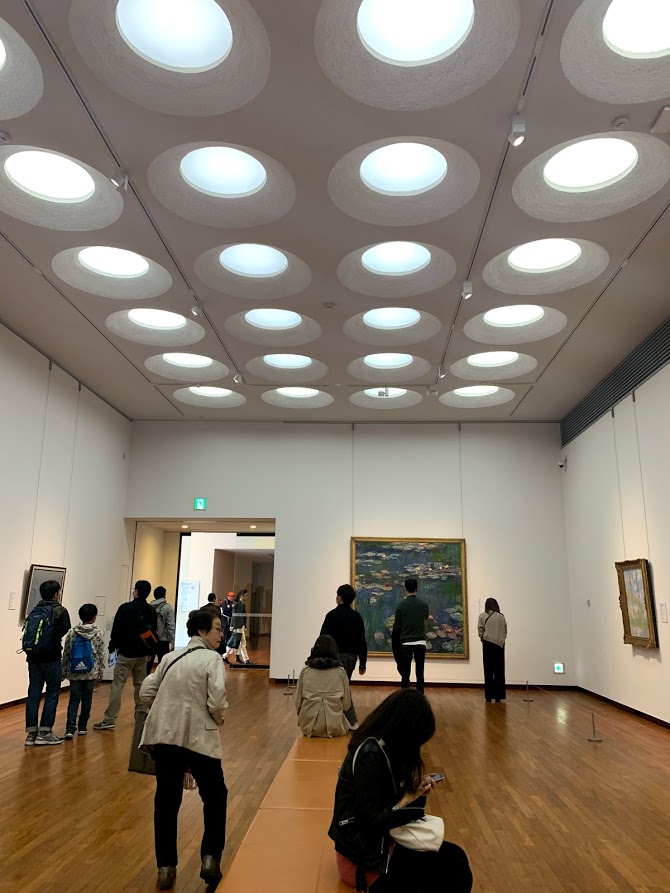 西洋美術館自体は作品が美しくみられるよう自然光の入り方が考えられているなと感じます。エントランスの吹き抜けは上方から柔らかい光が降り注いでとても気持ちの良い空間でしたし、現在は作品が劣化してしまうので使われていないという自然光を取り入れるための光の部屋など今まで観ていないところも鑑賞できました。