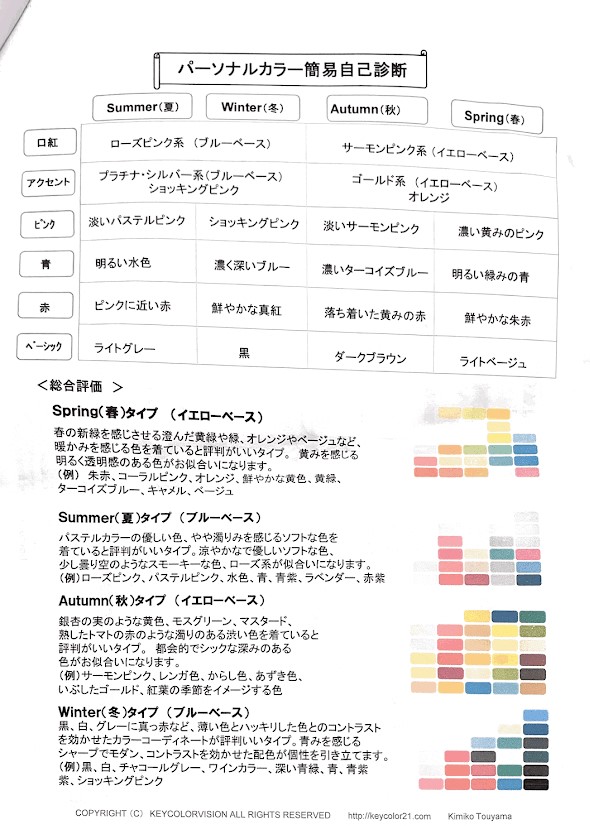 自分自身の持つパーソナルカラーは何かなど診断しました。