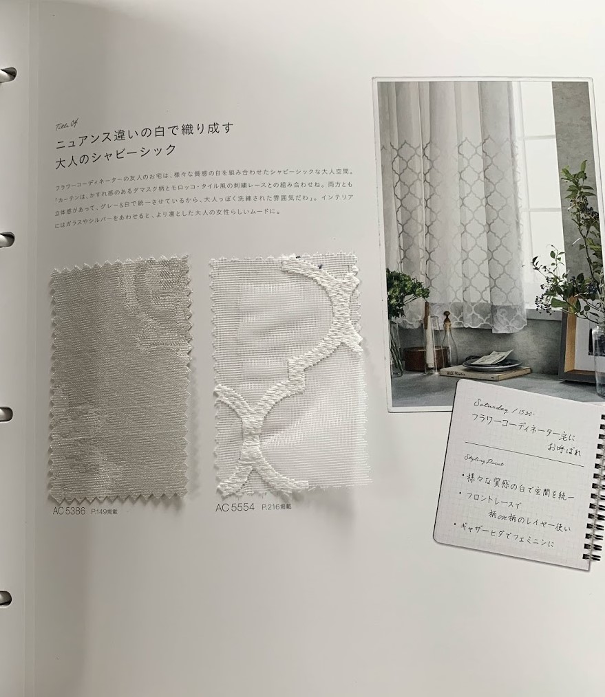 壁紙FINEとカーテンACの見本帳。早速展示会が長野でも行われるのですが