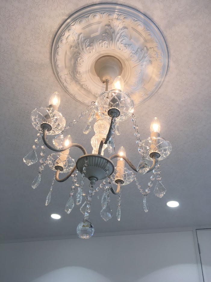 出来上がった部屋に嬉しくなった私です。シャンデリアが入るとやはり違いますね。