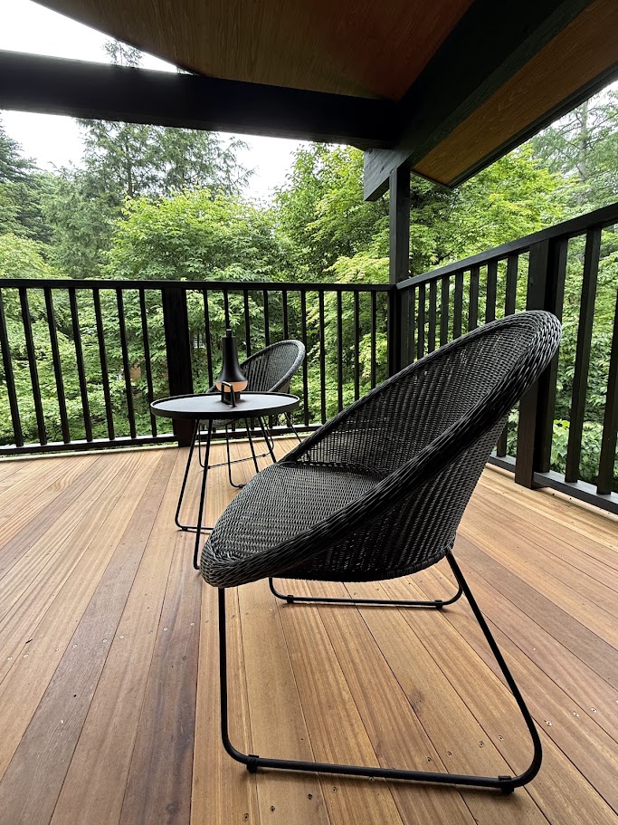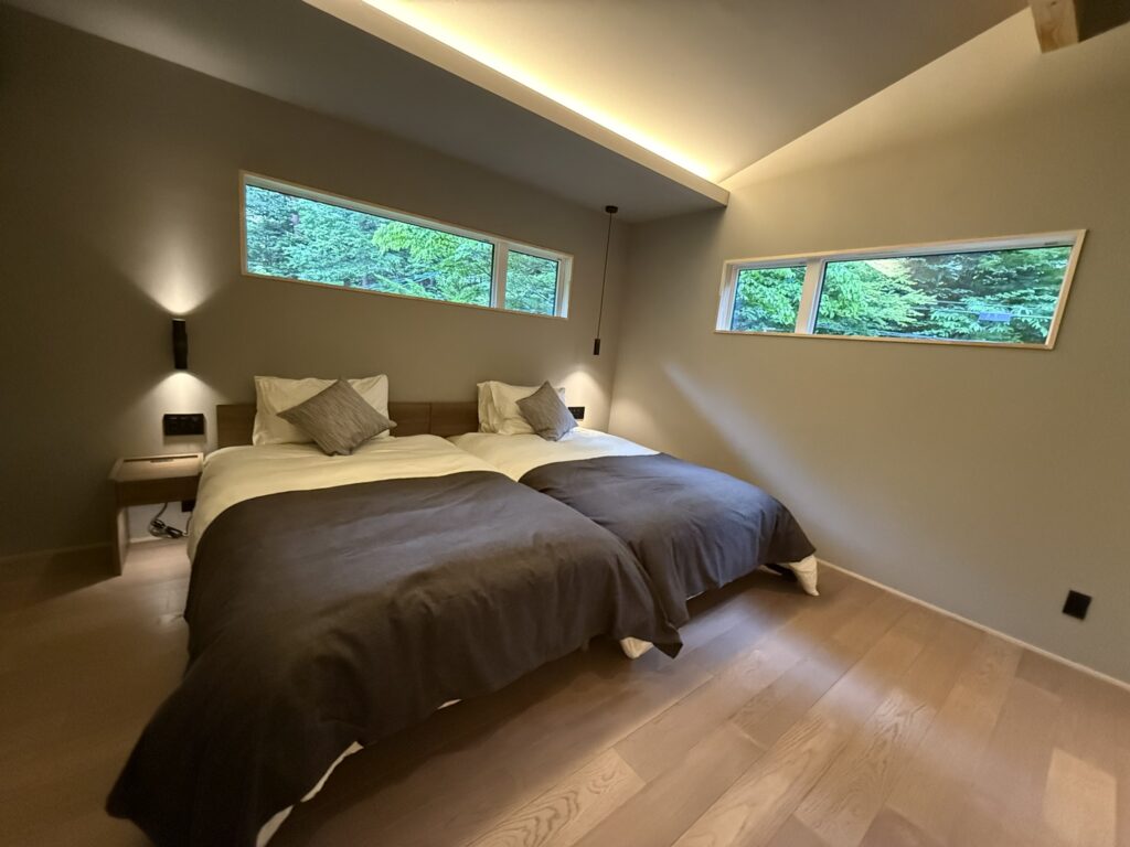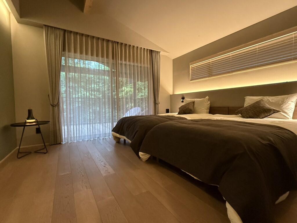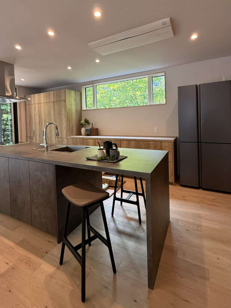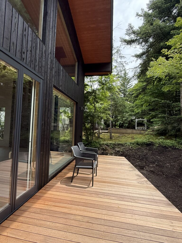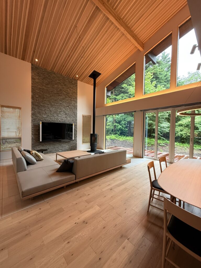 装飾を入れなかった窓から見える森の緑がアートのように際立ちます。