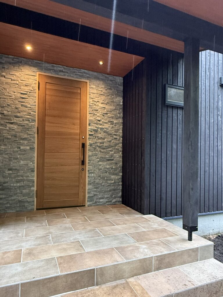 ご要望をもとに玄関ドアを開けると外部の緑が目に飛び込むように